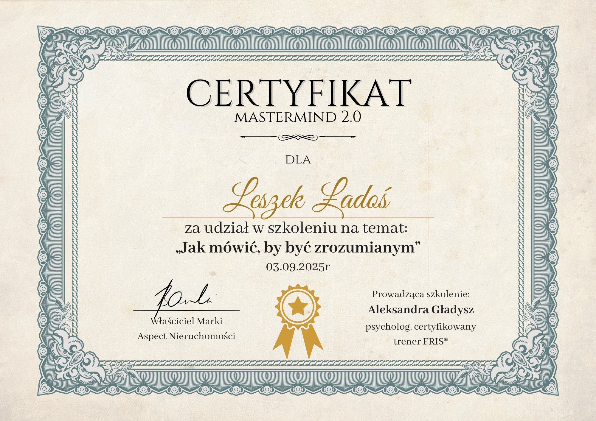 Zaangażowanie moje i całego zespołu doprowadziło do zajęcia III miejsca wśród oddziałów Aspect Nieruchomości w 2022 roku, w drugim roku działalności biura.